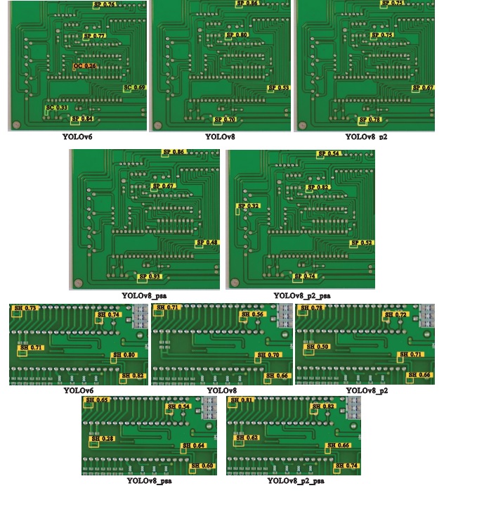 | 瑕疵类别 | YOLOv6 | YOLOv8 | YOLOv8_p2 | YOLOv8_psa | YOLOv8_p2_psa |