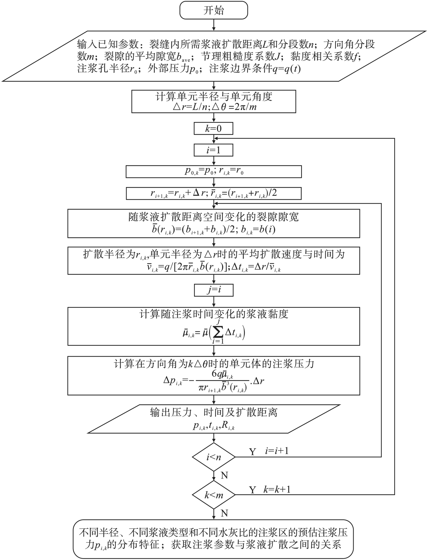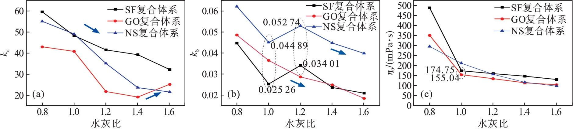 In order to study the diffusion mechanism of grouting materials in geotechnical and mining engineering, the rheological properties of three types of cement-based slurries under five water-cement ratios were analyzed. Based on the time-dependent viscosity of the slurry and the characteristics of fractured rock masses, a theoretical calculation model for grouting slurry diffusion was established to elucidate the diffusion mechanisms of different cement-based slurries. The results indicate that the slurry of the nano-silica sol composite system has a relatively low density(1.25~1.35 g/cm3)and high fluidity (260~425 mm). The slag-fly ash and graphene oxide composite systems exhibit low bleeding rates(< 30%)and good stability. The viscosity of the slurry demonstrates time-dependent characteristics, with a fitting function(η(t)=η0+kaekbt). Time-dependent characteristics weakens as the water-cement ratio increases. The diffusion radii of the three slurries are obtained through computational procedures, revealing that grouting pressure, slurry type, and water-cement ratio collectively influence the diffusion. Under the same diffusion distance, grouting pressure is positively correlated with the time-dependent viscosity characteristics. The graphene oxide composite system requires the least grouting pressure at a given distance, making it easier to diffuse.