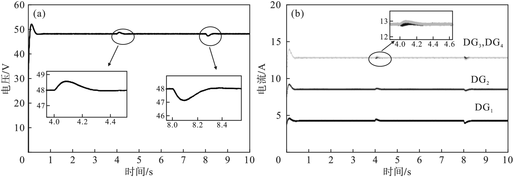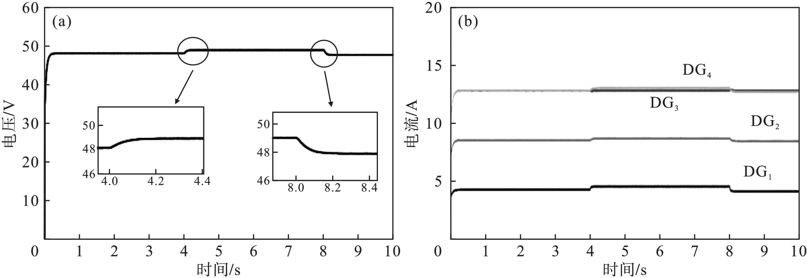 In order to solve the problem of voltage deviation and current distribution imbalance in direct current (DC) microgrid under false data injection attack, a distributed resilient cooperative control method was proposed by taking the islanded DC microgrid with multiple distributed generators as the research object. This method could effectively eliminate the impact of false data injection attacks and will not interfere with the operation of the system under normal circumstances. The Lyapunov stability theory was used to prove that the DC microgrid can operate stably when it is attacked by any constant false data injection, achieving the two control objectives of voltage regulation and current distribution. The simulation model was built by MATLAB/Simulink, and the validity of the control method was verified.
