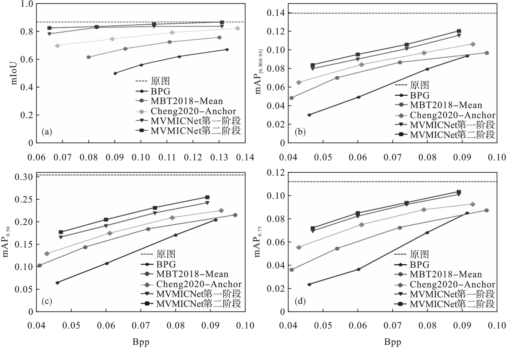 | 算法 | Bpp | PSNR/dB | MS-SSIM | mIoU | |